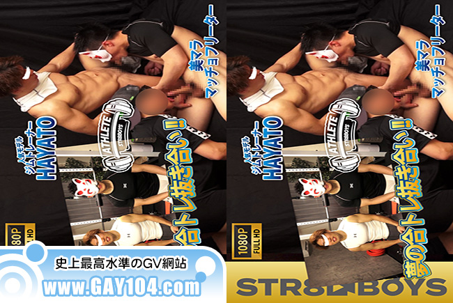 コメント:人気モデルジムトレーナーHAYATO22歳とマッチョフリーター25歳の筋肉初共演作品!インタビューも早々に合トレ開始!懸垂、ベンチプレス、腹筋ローラーと次々とメニューをこなします。HAYATOのガチトレーナー講座付き!笑。腹筋ローラーはまじで2人ともすごい。さすがのマッチョ。経験者ならわかりますが直立の状態から体勢を水平まで伸ばしまた戻る。おぉ!!って感じです笑。合トレを終えたら、ようやくキスから始まりお互いのウエアを脱がし股間を弄り...そしてついにしゃぶりあい。HAYATOは初フェラ挑戦だし相手モデルもぎこちない感じが、またそれが初々しくていいですね。その後濃厚キスに69、相互ローション攻めをし、最後はマッチョフリーターはまさかの咥えイキ!HAYATOはマッチョフリーターの顔にザーメンぶちまけます!